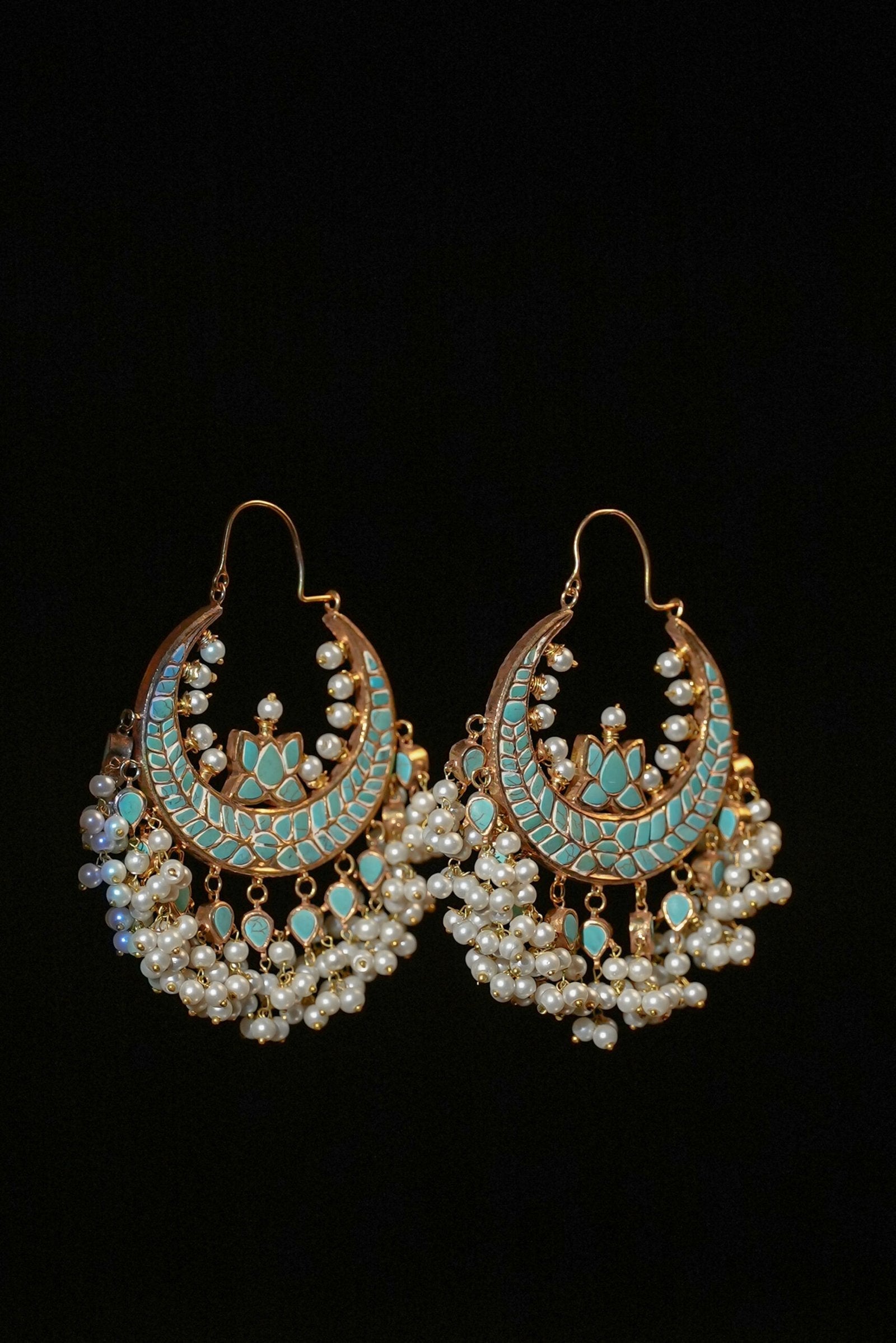 Key Features: Elegant Design: A beautiful combination of Feroza stones and classic pearls in a traditional Chaand Bali design. Feroza Stones: The soothing turquoise color of the Feroza stones adds a touch of luxury and calm. Pearl Detailing: Lustrous pearls that bring timeless elegance to the design. Traditional Yet Modern: A perfect fusion of traditional design with modern sophistication. A.S XPRESSION JEWELLERY; Feroza and Pearl Chaand Bali The Feroza and Pearl Chaand Bali earrings bring together the timeless beauty of Feroza stones and pearls in a classic Chaand Bali design. The soft turquoise hue of the Feroza stones contrasts beautifully with the lustrous pearls, creating a piece that is both elegant and unique. Crafted with precision and care, these earrings are the perfect accessory for any occasion. Whether you're attending a wedding, festive event, or simply adding a touch of elegance to your everyday look, these earrings are a versatile addition to any jewellery collection. Their blend of tradition and modern elegance ensures they will remain a cherished piece for years to come.