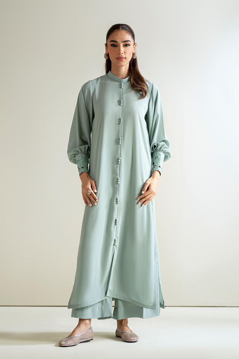 Such an easy outfit to throw on and instantly feel polished. The long shirt has a sleek neckline with button details, plus embroidered sleeves that give it a little flair €” perfect for everyday wear.