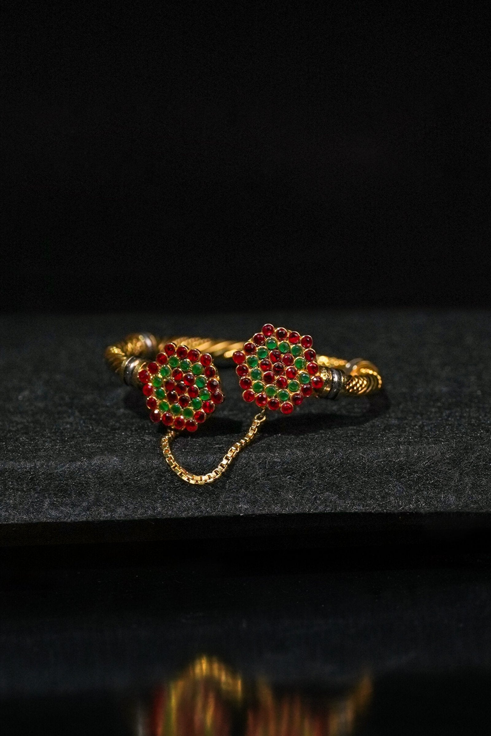 Key Features: Multi-Stone Detailing: A rich mix of sparkling stones for vibrant elegance. Polished Gold Finish: Smooth and radiant for a timeless look. Classic Kara Shape: Balanced design with subtle boldness. Perfect for Celebrations: Ideal for weddings, parties, and festive occasions. A.S XPRESSION JEWELLERY; Multi Stone Kara Bold. Beautiful. Radiant. The Multi Stone Kara is designed to bring color, sparkle, and sophistication to your jewelry collection. Each piece is carefully set with a mix of dazzling stones that catch the light from every angle, all encased in a smooth, polished gold finish. The traditional kara shape is reimagined with vibrant detail, making it a standout accessory for any celebration. Perfect for those who want their jewelry to speak with color and elegance, the Multi Stone Kara is your go-to piece for festive occasions and unforgettable style.
