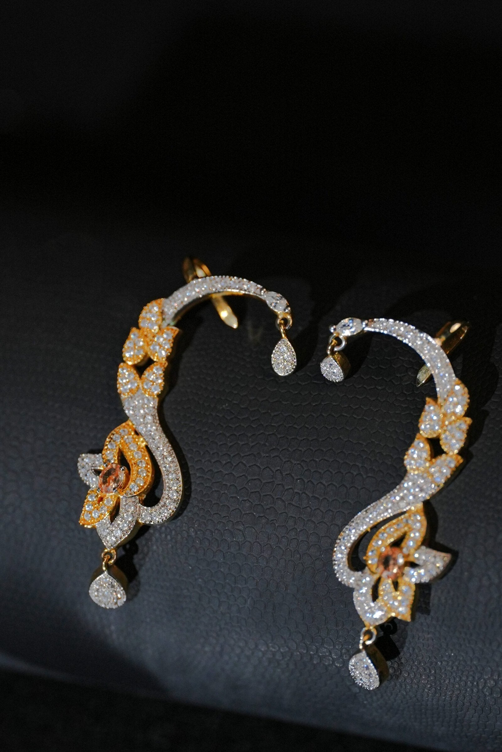 Key Features: Serpent-Inspired Design: Bold, statement-making hoop earrings featuring a serpent-inspired design. Zircon Accents: Sparkling zircon stones that add brilliance and sophistication to the earrings. Pearl Detailing: Elegant pearl accents that enhance the overall luxury of the design. Timeless Luxury: Perfect for weddings, special occasions, or making a bold statement with any outfit. A.S XPRESSION JEWELLERY; Statement Serpent-Inspired Hoop Earrings with Zircon and Pearl Accents The Statement Serpent-Inspired Hoop Earrings combine bold design with luxurious detailing. The unique serpent shape is enhanced with sparkling zircon stones and elegant pearl accents, adding an eye-catching allure. These earrings are perfect for making a statement at weddings, formal events, or for adding a dramatic touch to your everyday ensemble. With their intricate design and timeless beauty, these earrings will remain a standout piece in your jewellery collection for years to come.